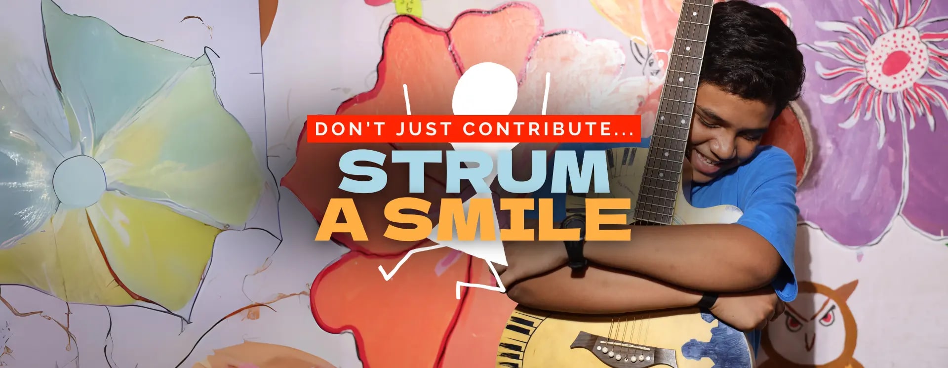 Welcome to STRUM A SMILE– our initiative inviting you to donate instruments, supplies, funds, time and love to brighten lives. Got an instrument lying around? Got some spare time in the week? Got some funds you want to donate? Then join our nationwide campaign to light up India with music!